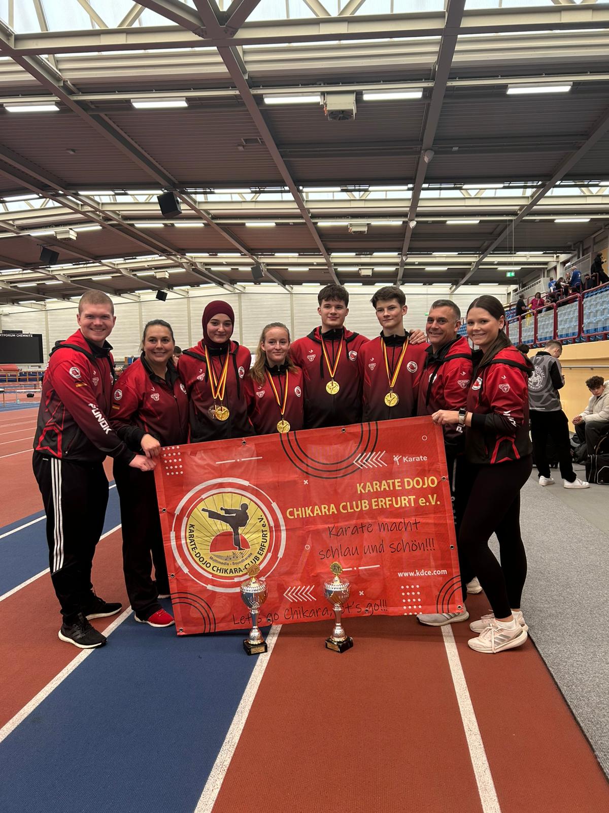 Ein Ergebnis, das in die Geschichte des Karatesports eingehen wird. Im Kumite (Freikampf) gibt es bei der Altersklasse U16 und U18 vier Teamdisziplinen bei einer DM. In Chemnitz gewinnt Thüringen alle vier, wovon die Sportler des Chikara Clubs mit der Unterstützung der anderen Thüringer Vereine drei gewinnen. Der Chikara Club avanciert zum Erfolgreichster Verein. Am Wochenende vom 15. und 16. November fanden die Deutschen Meisterschaften der U16 und U18 in Chemnitz statt. Die letzte nationale Deutsche Meisterschaft des Jahres 2025 begann am Samstag mit allen Kata Wettkämpfen beider Altersklassen sowie den Kumite Kämpfen der U16.