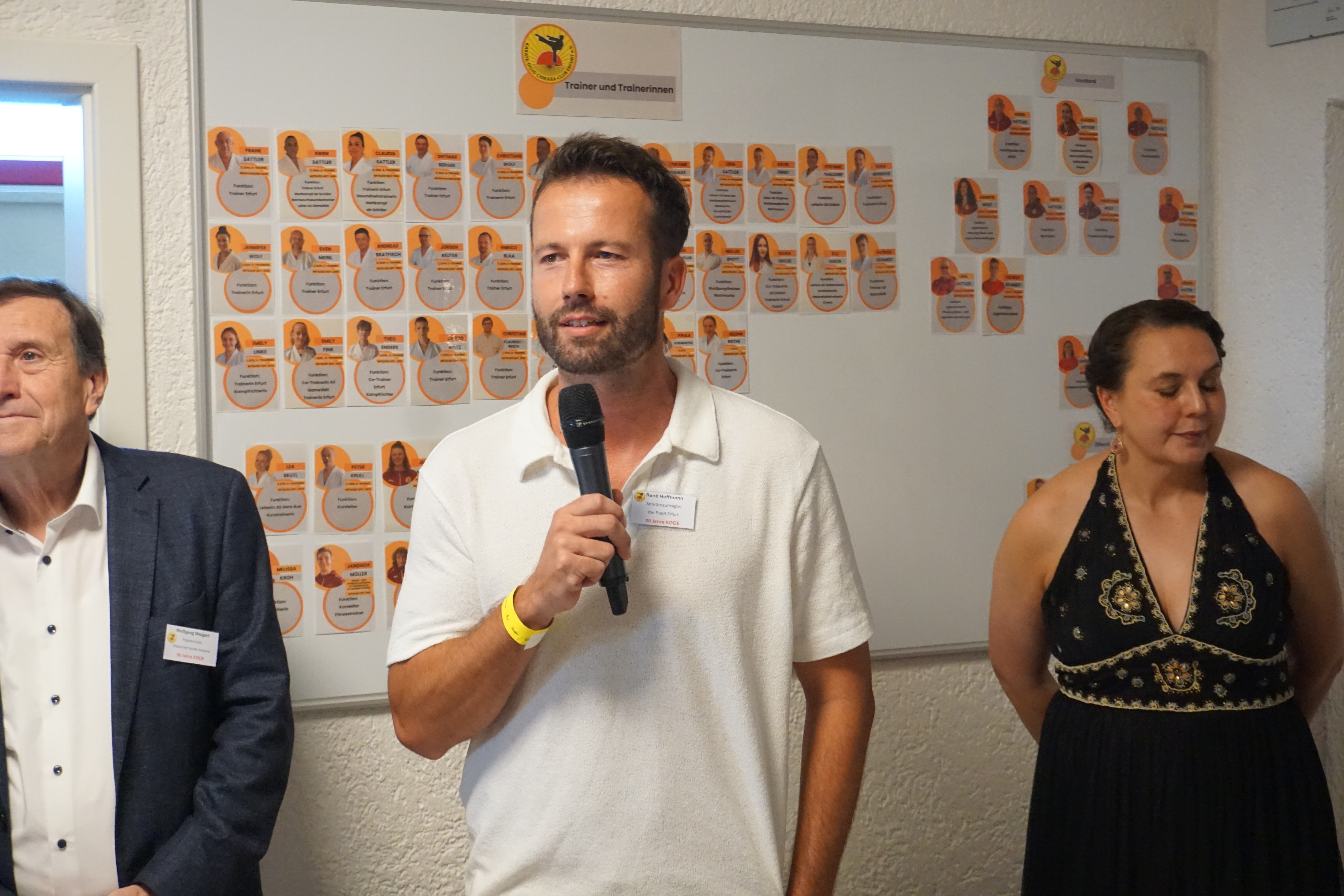 Das Vereinsjubiläum begann mit einer festlichen Veranstaltung, bei der langjährige Trainerinnen und Trainer für ihr besonderes Engagement geehrt wurden. Ehrungen durch den Stadtsportbund, den Thüringer Karate Verband, den Deutschen Karate Verband und den Landessportbund (LSB) würdigten das Engagement der Trainer, deren Arbeit als Grundlage des Vereins gilt. Die Anwesenden lauschten Reden, die nicht nur sportliche Erfolge, sondern vor allem das Schaffen eines sicheren, respektvollen und familienfreundlichen Umfelds in den Mittelpunkt stellten. Gleichzeitig wurden Sponsoren, langjährige Mitglieder und Mitglieder mit besonderem Engagement für ihre Treue und ihren Beitrag zum Vereinsleben gewürdigt.