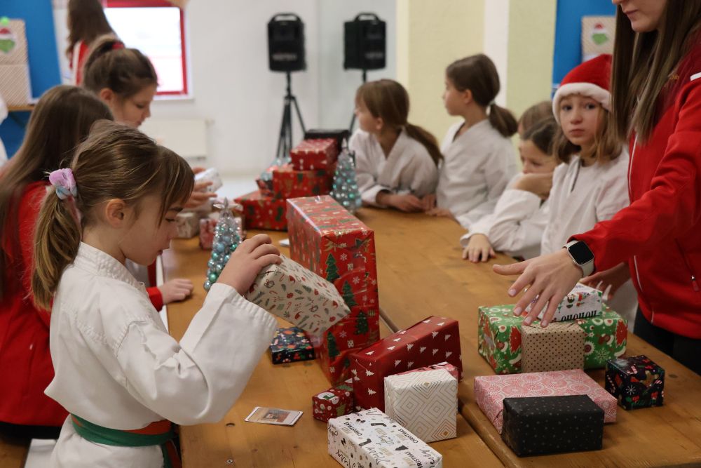 Weihnachtstraining Geschenke und Autogramme für die Kinder